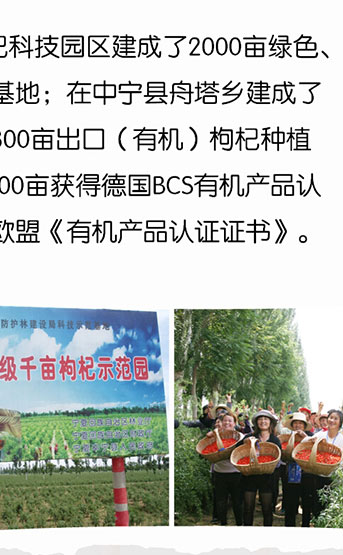 我公司得益于銀川市金鳳區(qū)政府各部門領(lǐng)導(dǎo)的關(guān)愛(ài)與扶持,逐漸成長(zhǎng)為國(guó)內(nèi)枸杞行業(yè)集種植、加工、銷售于一體的較大規(guī)模的民營(yíng)企業(yè)之一,我們努力爭(zhēng)創(chuàng)農(nóng)業(yè)產(chǎn)業(yè)化國(guó)家重點(diǎn)龍頭企業(yè)、寧夏回族自治區(qū)農(nóng)業(yè)產(chǎn)業(yè)化優(yōu)秀龍頭企業(yè)、寧夏枸杞知名品牌企業(yè),農(nóng)產(chǎn)品流通骨干企業(yè)。