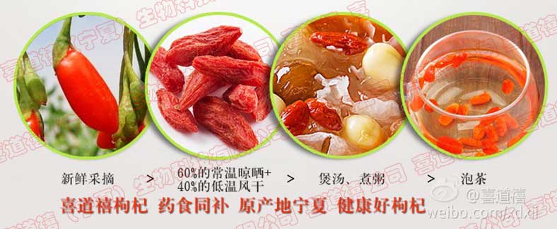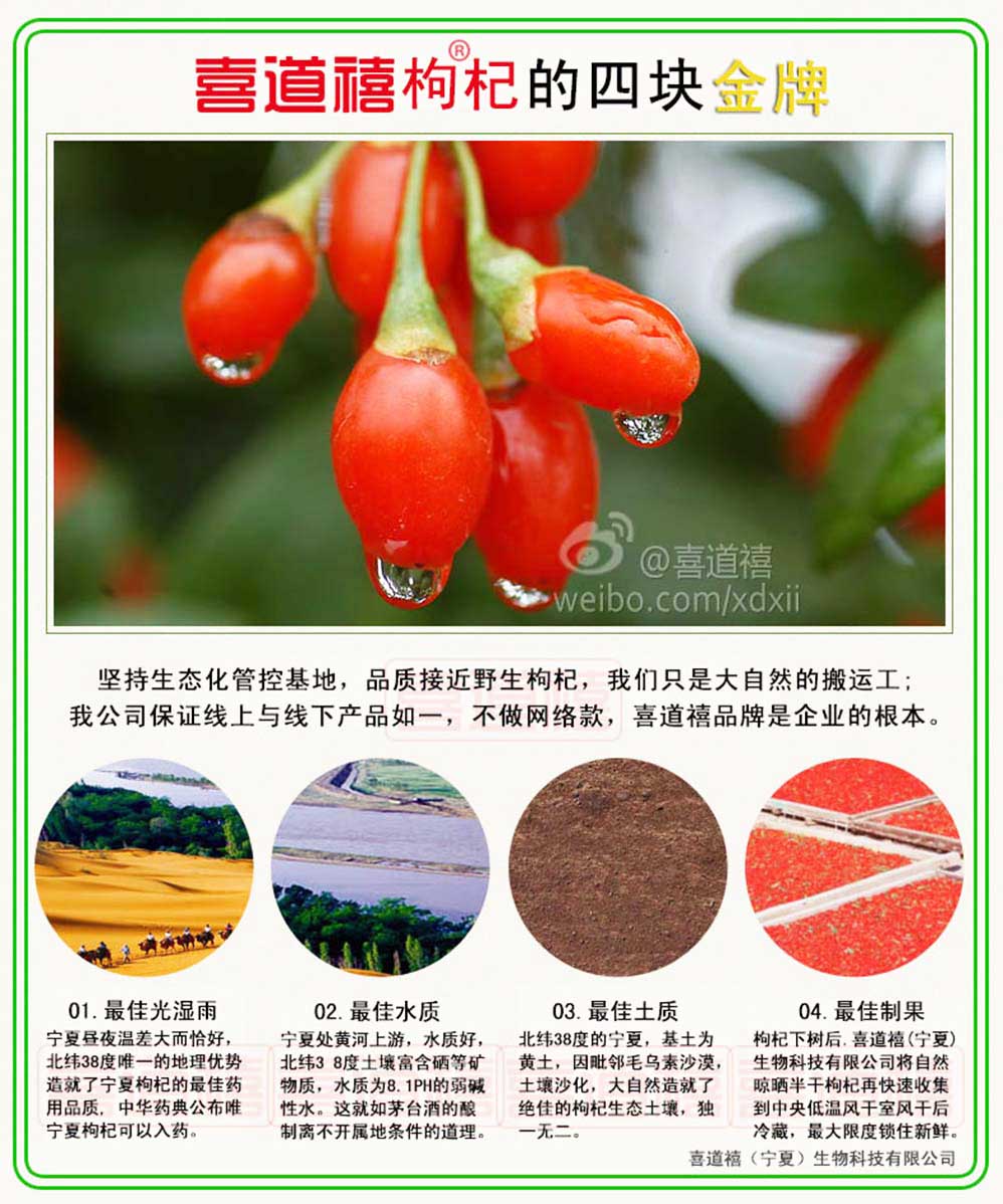 喜道禧枸杞,從視覺、口感、味覺、觸覺四維角度品鑒喜道禧好枸杞的色、純、甘、藥、醇、香、勁!先干嘗再濕品,好品質就是喜道禧。