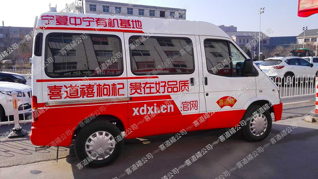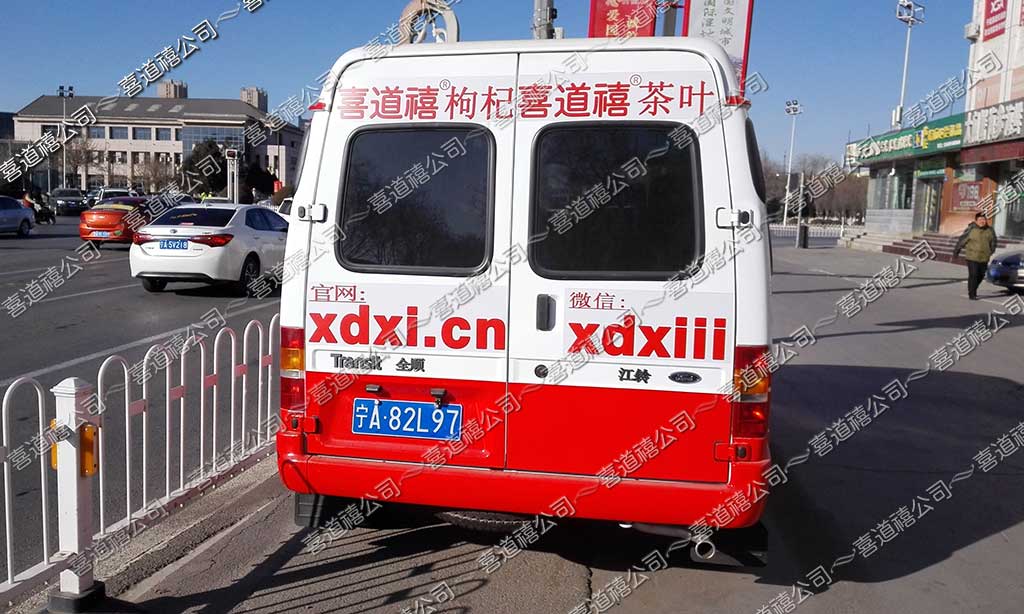 目前,從車的全局來看,較滿意,車的整體布局為步步高升之勢,字是足夠的大,醒目,即是宣傳車又是服務車;有限空間承載的信息多,最重要的是金牌產品匹配商務寬體車的成本是巨大的,這也是對喜道禧加盟商的最大支持,同時又是對客戶的高度負責!