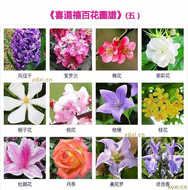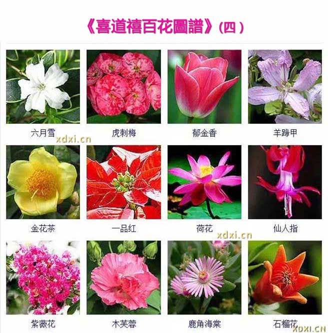 花友 (對各種花的雅稱) 、十二客 (對十二種名花的謔稱) 、玉英 (花的美稱) 、玉玲瓏 (花的別名) 、 瑤芳 (白色花朵的美稱)、 瓊苞 (花苞的美稱) 、玉葉 (花木葉子的美稱) 、木芍藥 (牡丹的別名)、 百兩金 (牡丹的別名)、 伊洛傳芳 (牡丹的別稱) 、花后 (牡丹的別名) 、貴客 (牡丹的別名)、 洛陽花 (牡丹的別稱) 、鹿韭 (牡丹的別名)、 雄紅 (牡丹的別名) 、賞客 (牡丹的別名) 、鼠姑 (牡丹的別名)、 醒酒花 (牡丹花的別名)、 京花 (千葉牡丹的別名) 、九英梅 (蠟梅的別名) 、久客 (臘梅的別名) 、小黃香 (蠟梅的別名)、 奇友 (蠟梅的別稱)、 黃梅花 (蠟梅的別名) 、寒客 (臘梅的異名) 、狂客 (楊花的別稱)、 一捻紅 (山茶花的別名) 、月丹 (山茶的別名)、 玉茗 (白山茶花的別稱)、 豐瑞花 (瑞圣花的別名) 、閨客 (瑞香花的別名) 、紫風(fēng)流 (麝囊花的別名)、 蓬萊紫 (瑞香花的別名) 、錦熏籠 (瑞香花的別名)、麝囊 (瑞香花的別名) 、僭客 (春花的別名) 、 百結(jié)花 (丁香的別名) 、素客 (丁香花的別名)、 情客 (丁香的別名) 、女郎花 (辛夷的別名)、 書客 (木筆花的名) 、新夷 (木蘭的別名)、 山石榴 (亦省稱“山榴”,杜鵑花的別稱)、 山客 (躑躅的雅稱) 、山躑躅 (杜鵑花的別名)、 紅躑躅 (紅杜鵑花的別稱)、 映山紅 (杜鵑花的別名)、 謝豹花 ( 杜鵑花的別名)、 躑 (杜鵑花的別名)、 躑躅 (杜鵑花的別名) 、拘那夷 (亦稱“拘兒”,夾竹桃的別名)、 俱那衛(wèi) (夾竹桃的別名)也叫俱那異、枸那花 、川紅 (海棠的別名) 、名友 (海棠的別名) 、蜀客 (海棠的別名)、 蜀錦 (海棠的別稱)、 醉美人 (垂絲海棠的別稱) 、雪 (繡球花的別名) 、內(nèi)消 (紫荊的別名)、 蚍蜉 (紫荊的別名) 、七里香 (山礬的別名)、 幽客 (山礬的別名)、 米囊 (花的別名)、 照殿紅 (佛桑花的別名)、 馬塍 (合歡的別名)、 馬纓花 (合歡樹的別稱)、 青囊 (合歡的別稱) 夜合 (合歡的別名)、 鸚哥花 (刺桐花的別名) 、木丹 (梔子的別名)、 林蘭 (梔子的別名) 、越桃 (梔子的別名) 、禪客 (梔子的別稱)、 鮮支 (梔子的別名)、石醋醋 (石榴的異名)、 村客 (對石榴的戲稱) 、百日紅 (紫薇的別名)、 怕癢樹 (又名百日紅,紫薇花的別名) 、官樣花 (紫薇花的異名) 、猴郎達樹 (亦稱“猴刺脫”,紫薇的別名)、 滿堂紅 (紫薇的別名) 、王蒸 (木槿的別名) 、日及 (木槿的別名) 、時客 (木槿的別稱)、 瘧子花 (槿花的別名) 、面花 (木槿花的別名) 、愛老 (木槿的異名) 、朝開暮落花 (木槿的別名)、 朝生 (木槿的別名) 、朝華 (亦稱“朝客”,木槿的別名)、 朝 (木槿的別名)、 裹梅花 (木槿的別稱) 、藩籬草 (木槿的別稱) 、七里香 (桂花的別名)、 九里香 (木犀的別稱)、 廣寒仙 (桂花的美稱) 、木樨 (同“木犀”,桂花的別稱) 、仙客 (桂的異名) 、嚴(yán)客 (亦作“巖客”,木樨的別稱)、 巖桂 (木犀的別名)、 金粟 (桂花的別名)、 木蓮 (木芙蓉的別名) 、木蕖 (木芙蓉的別名) 拒霜 (木芙蓉的別稱)、 斷腸草 (木芙蓉的別名)、 綺帳 (芙蓉花的別名)、 醉客 (木蓮的謔稱)、 女郎花 (木蘭的別名)、 佞客 (含笑花的異名) 、 攀枝花 (木棉花的別稱) 、一枝春 (梅花的別名)、木母 (梅的別名) 、花魁 (梅的別名)、 狀元花 (梅花的別稱)、 國香 (梅的異名) 、梅兄 (對梅花的雅稱) 、梅妻 (對梅花的戲稱)、 清客 (梅的別名) 、寄春君 (梅的別稱) 、暗香疏影 (梅花的代稱) 、九疑仙人 (綠萼梅的別名) 、玉骨 (梅花枝干的美稱) 、葦綃 (李花的別稱) 、俗客 (李花的別名) 、及第花 (杏花的別名)、 瀛州玉雨 (梨花的別名)、 鬼客 (棠梨花的別稱)、 月臨花 (林檎花的別名)、 雋客 (橘花的雅稱) 、勢客 (凌霄花的別名) 、鬼目 (凌霄花的別名) 、 陵苕 (凌霄花的別名) 、紫葳 (凌霄花的別名)、 小南強 (茉莉花的別稱) 、狎客 (茉莉的別名)) 、柰花 (亦作“柰子花”,茉莉花的別名) 、萼綠君 (茉莉花的別名)、 華 (亦作“花”,茉莉花的別名)、 俗客 (棣棠花的別名) 、玉雞苗 (薔薇的別名)、 買笑 (薔薇花的別名) 、錦被堆 (薔薇花的俗名) 、刺客 (玫瑰花的別稱) 、徘徊花 (亦省稱“徘徊”,玫瑰花的別稱)、 斗雪紅 (月季花的別名) 、紫華 (月季花的別名) 、癡客 (月季花的別名) 、才客 (酴花的謔稱) 、木香 (酴花的別名) 、獨步春 (酴花的別名)、 雅客 (酴的別稱) 、韻友 (酴花的別名)、 烏朕花 (玉蕊花的別名) 、散水花 (玉蕊花的別名) 、仙客 (瓊花的異名) 、文官花 (錦帶花的別名) 、海仙 (錦帶花的別名) 、長十八 (牽牛花的別名) 、狗耳草 (牽牛花的別名) 、喇叭花 (牽牛花的別名) 、勤娘子 (牽牛花的俗稱) 、田客 (鼓子花的別名) 、豚腸草 (旋花的別名) 、筋根 (旋花的別名) 、赦肺侯 (款冬花的別稱) 、橐吾 (款冬花的別名) 、可離 (芍藥的別名)、 白犬 (芍藥的別名)、 當(dāng)離 (又名將離,芍藥的別名)、 近客 (芍藥的別名) 、將離 (芍藥的別名) 、嬌客 (芍藥的別名) 、馀容 (芍藥的別名) 、離草 (芍藥的別名) 、婪尾春 (芍藥的別名) 、王者香 (蘭的別稱) 、國香 (蘭的異名)、 幽客 (蘭的別名) 、香祖 (蘭花的別稱) 、侍女 (蘭花的別名) 、媚世 (蘭花的別名) 、玉盤盂 (白芍藥的別名) 、木芍藥 (赤芍藥的別名) 、伊蘭 (賽蘭香的別稱) 、金盞銀臺 (水仙的別名) 、栗玉花 (水仙花的別稱) 、凌波仙子 (水仙花的別稱) 、雅客 (水仙的別稱) 